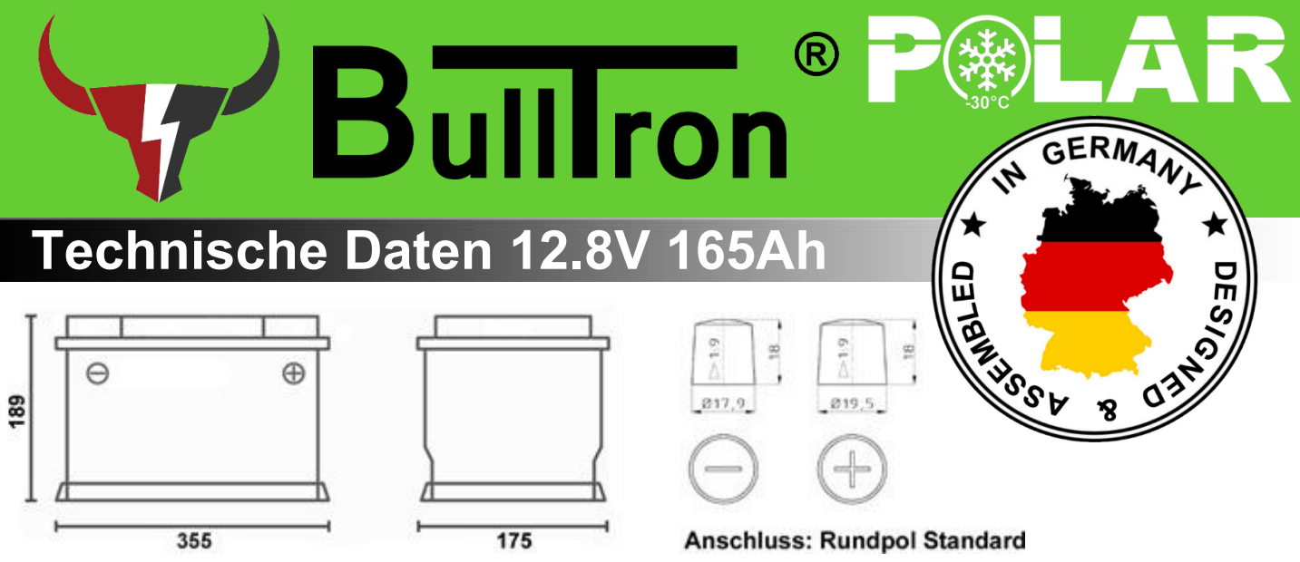BullTron LiFePO4 Batterie - 12V / 165 Ah Polar