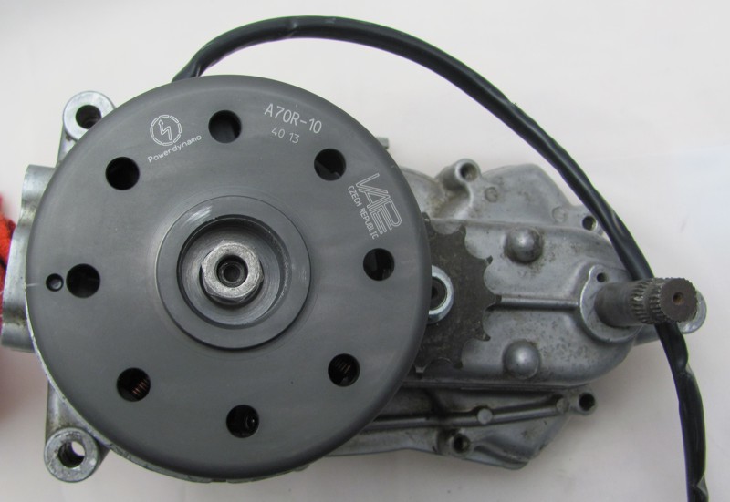 Lichtmagnetzündanlage mit integrierter kontaktloser, drehzahlabhängig automatisch verstellender Zündung.