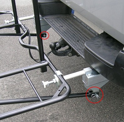 Befestigungsbolzen für die Diagonalstreben zur Abstützung des Grundträgers zum fahrzeugseitigen Adapter.