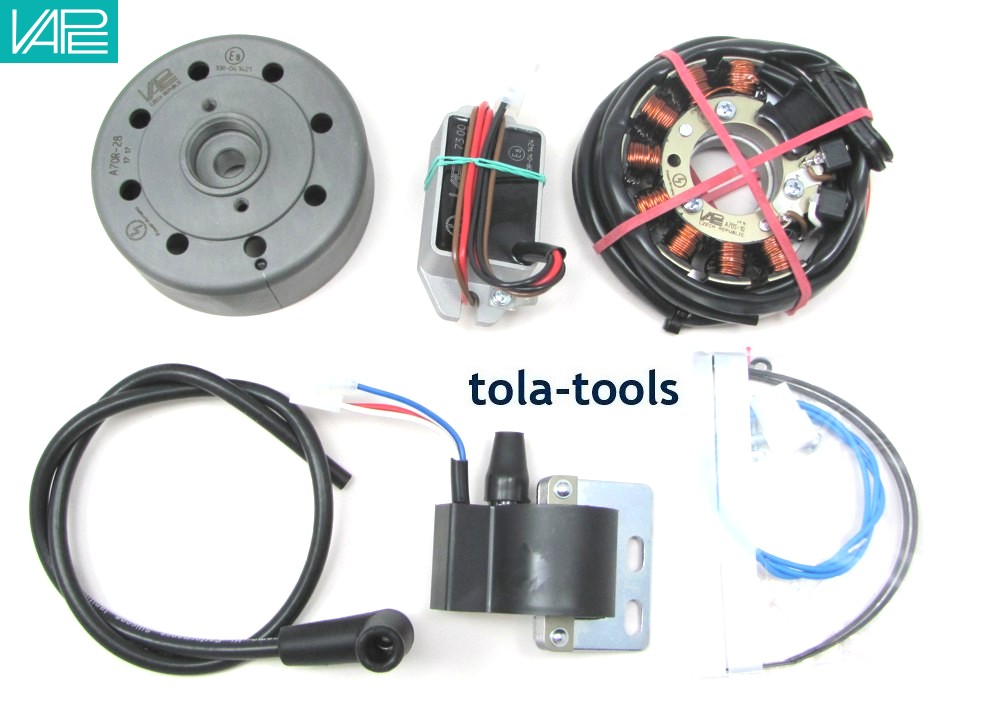 Lichtmagnetzündanlage mit integrierter kontaktloser Zündung. Lichtleistung 12V/100W Gleichstrom. Ersetzt die originale Magnetzündung.