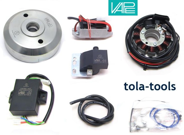 Lichtmagnetzündanlage mit integrierter kontaktloser, drehzahlabhängig automatisch verstellender Zündung. Lichtleistung 12V/100W Gleichstrom. Ersetzt alte Lichtzündmaschine vom Typ Safi nebst Unterbrecher und Zündspule. Sie benötigen an Ihrem Motorgehäuse keine Veränderungen. Technisch gesehen Sie können das System komplett ohne Batterie fahren.