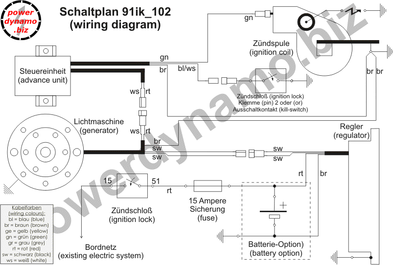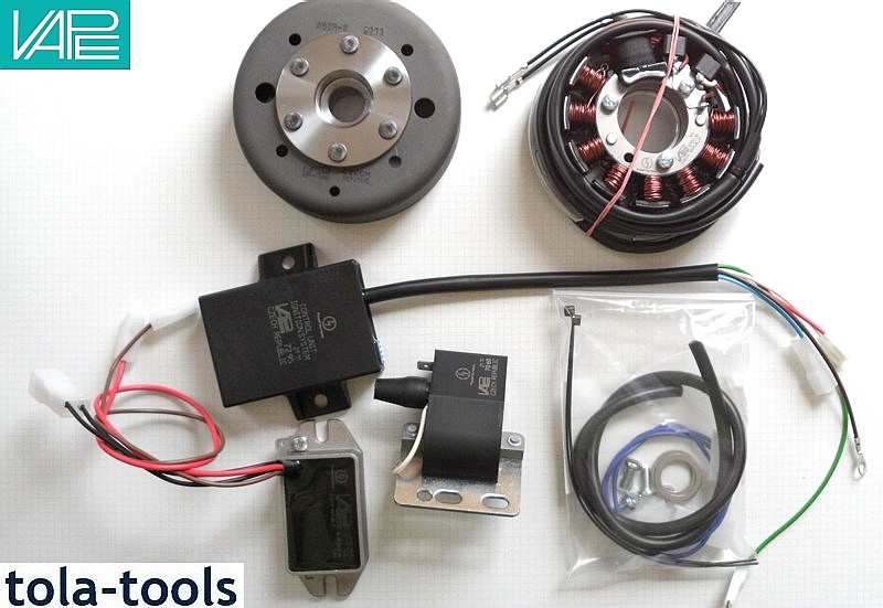 Ersetzt die komplette originale Dansi Magnet Anlage. Lichtmagnetzündanlage mit integrierter kontaktloser, vollelektronischer Zündung. Lichtleistung 12V/100W Gleichstrom. Es sind keine Modifikationen des Motorgehäuses notwendig. Das System kann ohne Batterie gefahren werden.