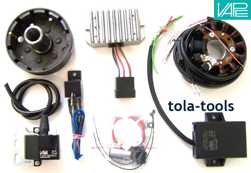 Lichtmagnetzündanlage mit integrierter kontaktloser, drehzahlabhängig automatisch verstellender Zündung, Lichtleistung 12V/100W Gleichstrom. Ersetzt die komplette alte Dynamo-Licht-Zündanlage, Unterbrecher und Zündspule. Sie benötigen an Ihrem Motorgehäuse keine Veränderungen. Technisch gesehen Sie können das System komplett ohne Batterie fahren.
