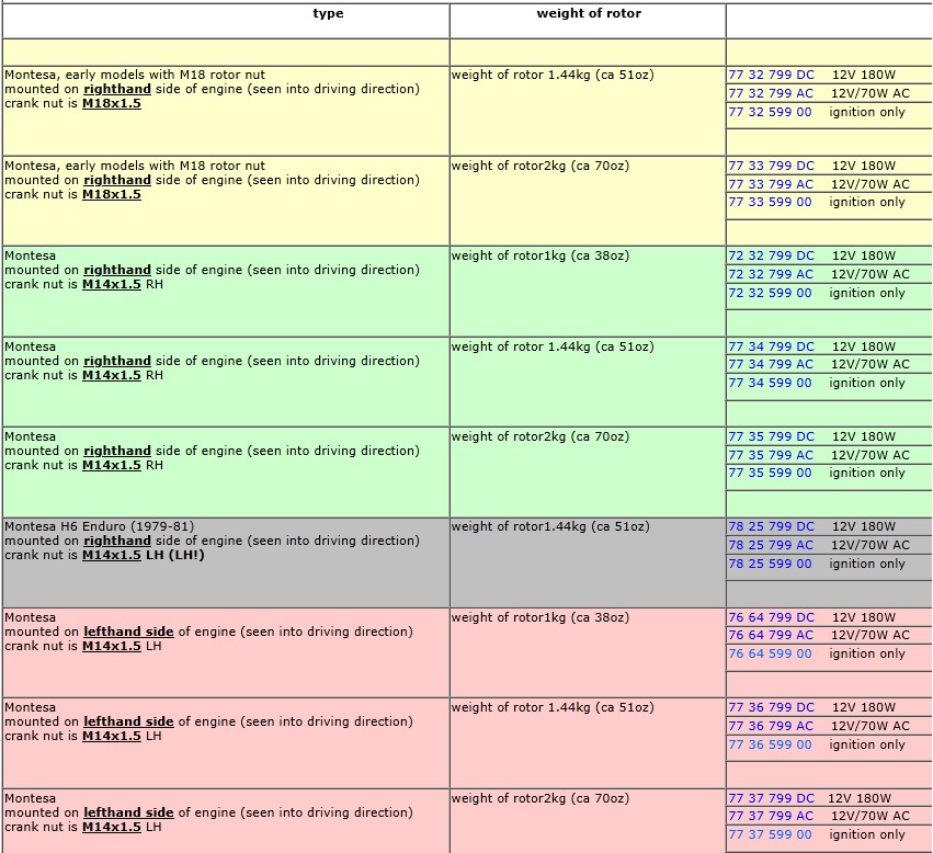 To select the correct MONTESA ignition system, the following parameters should be checked: