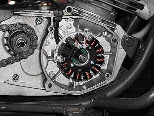 Generator / electronic ignition for 1968 -1975 Penton. Light output 12V/100W DC. Replaces original Motoplat system including coil. Does not require any modifications on crankcase.