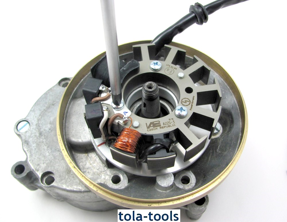 Magnet based generator with integrated fully electronical ignition. Output at 6V/18W AC.